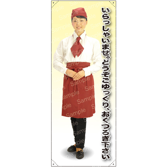 商品説明:いらっしゃいませ。どうぞごゆっくり・・・ カフェ(エンジ)A 等身大バナー 素材:トロマット(厚手生地) (62347)