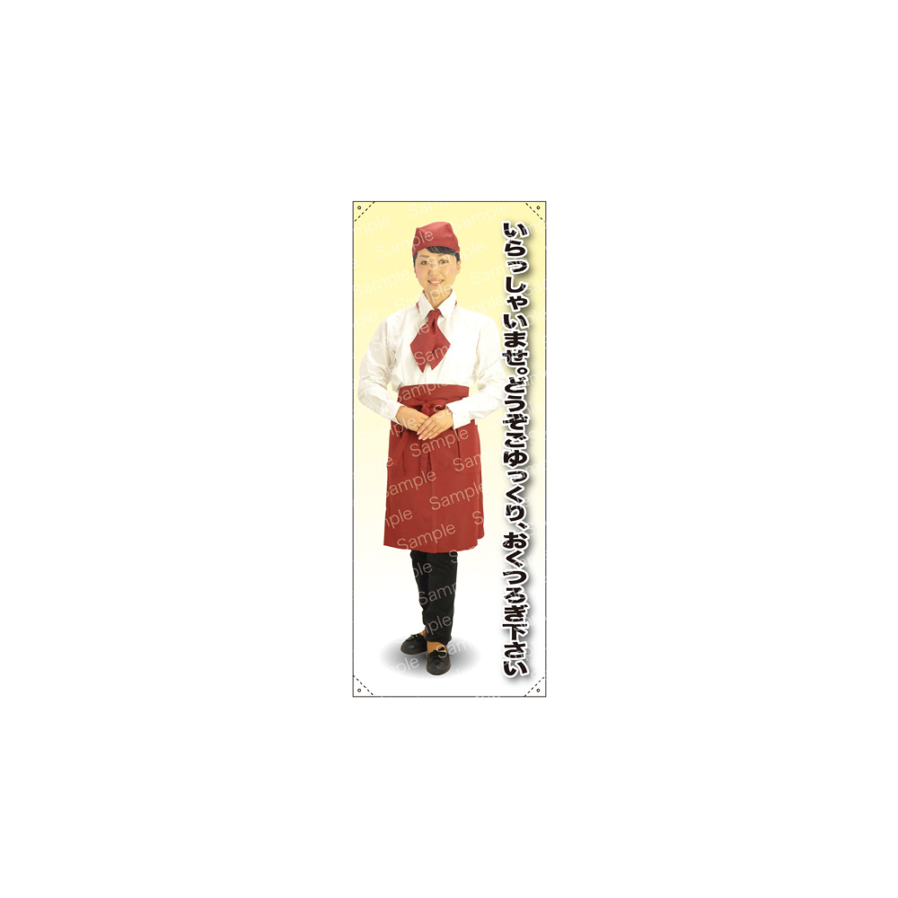 商品説明:いらっしゃいませ。どうぞごゆっくり・・・ カフェ(エンジ)A 等身大バナー 素材:ポンジ(薄手生地) (62348)