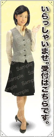 - いらっしゃいませ。受付はこちらです 女性ベスト 等身大バナー 素材:トロマット(厚手生地) (62155)