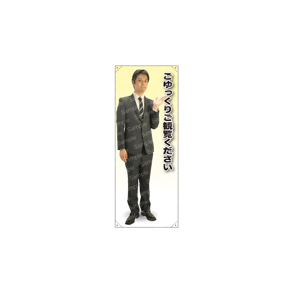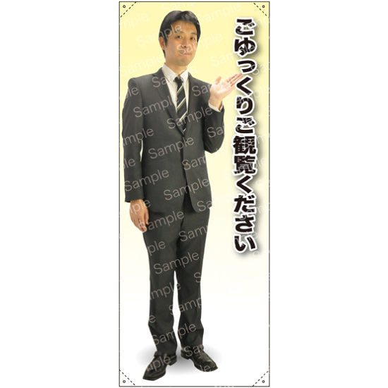 ごゆっくりご観覧ください 男性(上着) 等身大バナー 素材:トロマット(厚手生地) (62195)