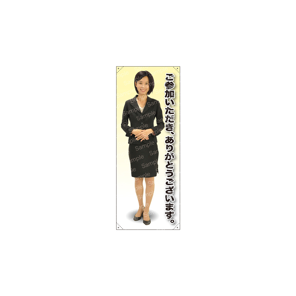 ご参加いただきありがとうございます 女性上着 等身大バナー 素材:トロマット(厚手生地) (62187)