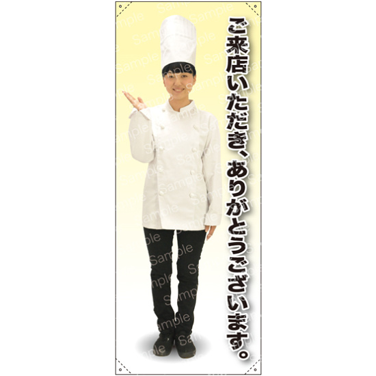 ご来店いただきありがとうございます コックコート 等身大バナー 素材:トロマット(厚手生地) (62265)