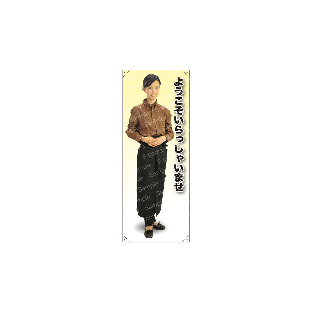 商品説明:ようこそ B 前掛長 等身大バナー 素材:トロマット(厚手生地) (62309)