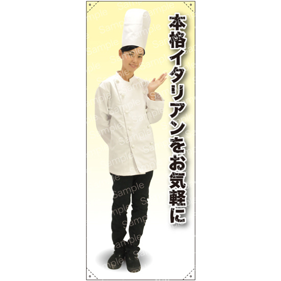 本格イタリアンを コックコート 等身大バナー 素材:ポンジ(薄手生地) (62276)