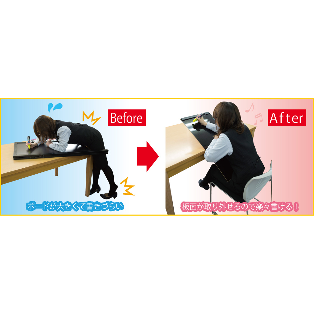- また板面を引き出して取り外せる新構造で、今まで一苦労だったボード書きが劇的に楽になります!