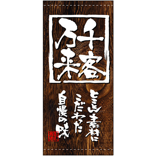 商品説明:フルカラー店頭幕(懸垂幕) 千客万来 (木目柄) 素材:ポンジ (3494)