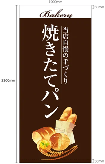 フルカラー店頭幕(懸垂幕) 焼きたてパン 茶色地・イラスト付 素材:ポンジ (67780) の商品詳細