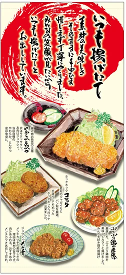 フルカラー店頭幕(懸垂幕) いつも揚げたて 素材:ポンジ (68897) の商品詳細