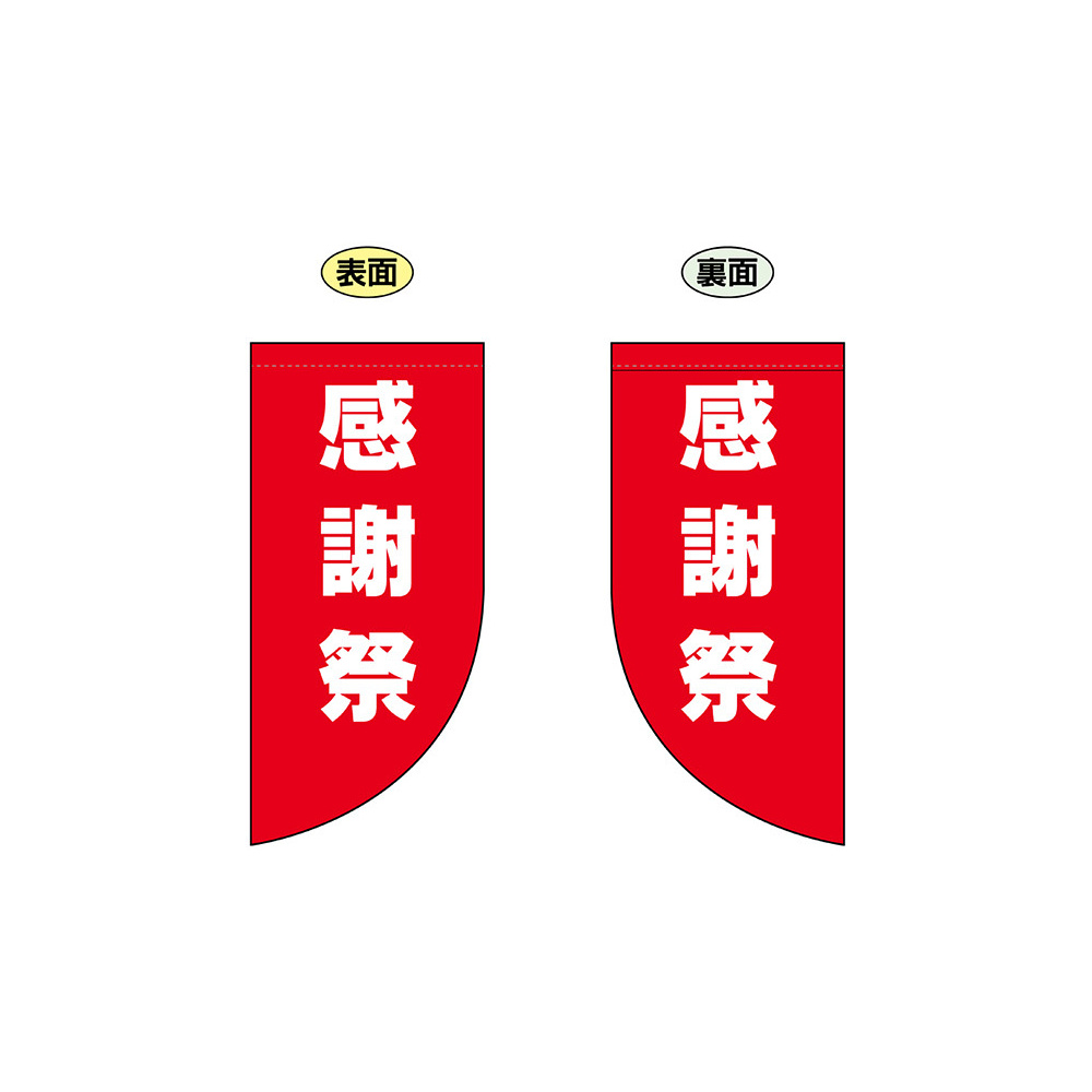 高さ550mmのショートタイプの高級遮光スエード素材に両面印刷した本格派販促フラッグ。表示内容「感謝祭」