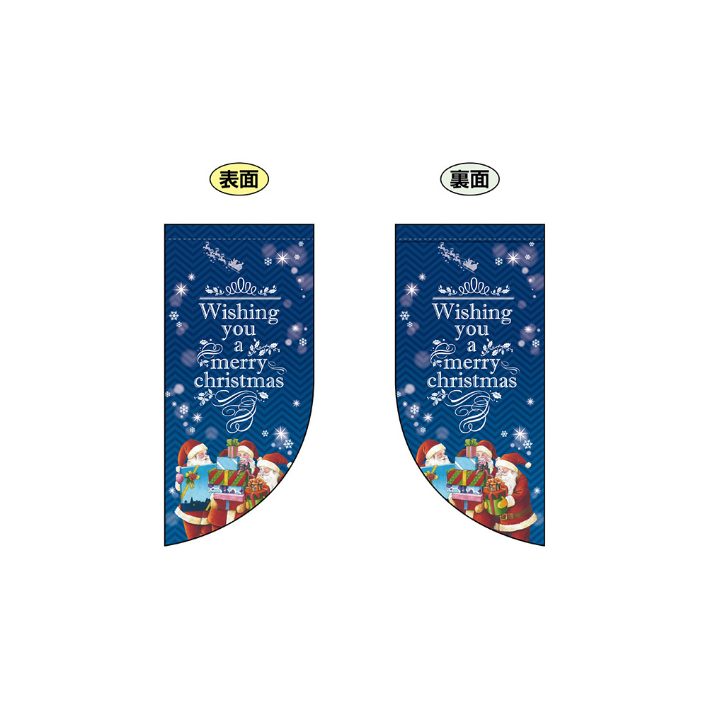 高さ550mmのショートタイプの高級遮光スエード素材に両面印刷した本格派販促フラッグ。表示内容「Wishing you a christmas」