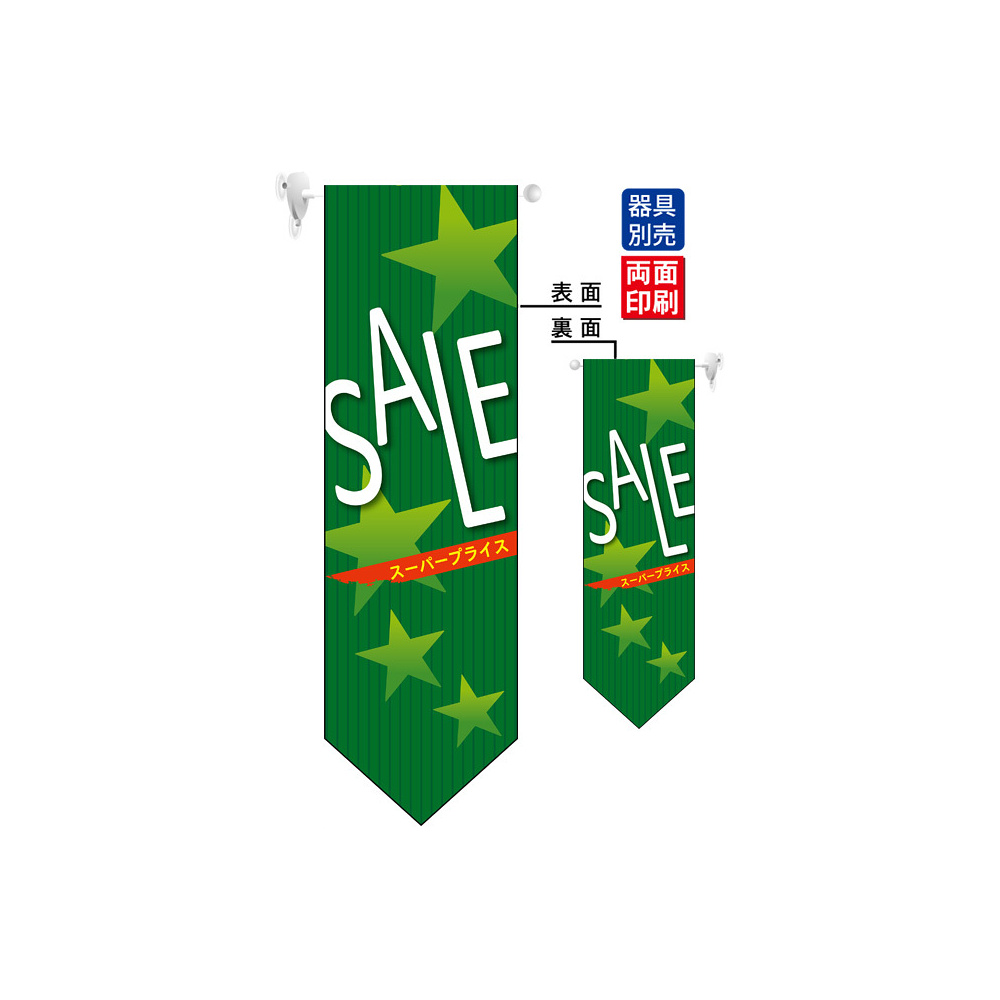 SALE (緑 星 ミドル) フラッグ(遮光・両面印刷) (6057)