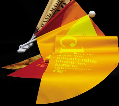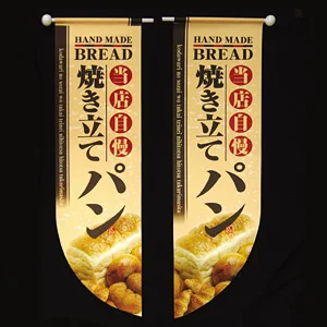 - ■店内のガラス面などに突き出しフラッグとして、壁面に吊り下げタペストリーとしてもOK!
