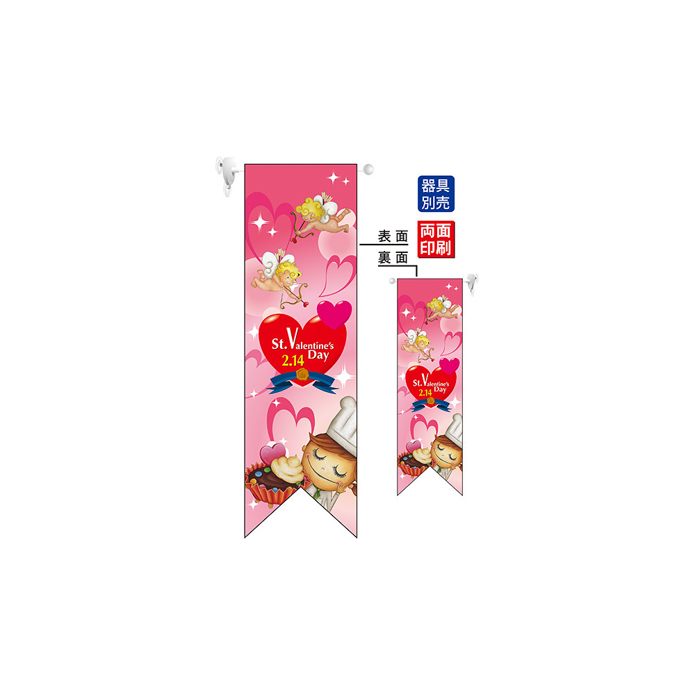 高さ850mmのロングタイプの高級遮光スエード素材に両面印刷した本格派販促フラッグ。表示内容「St.Valentines Day」