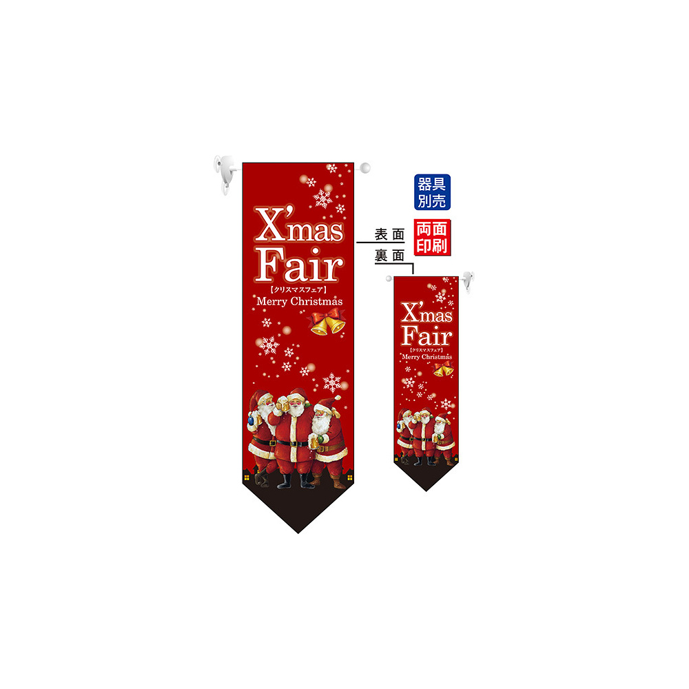 Xmas Fair (赤 下段中央に小さめのサンタの絵) フラッグ(遮光・両面印刷) (63082)