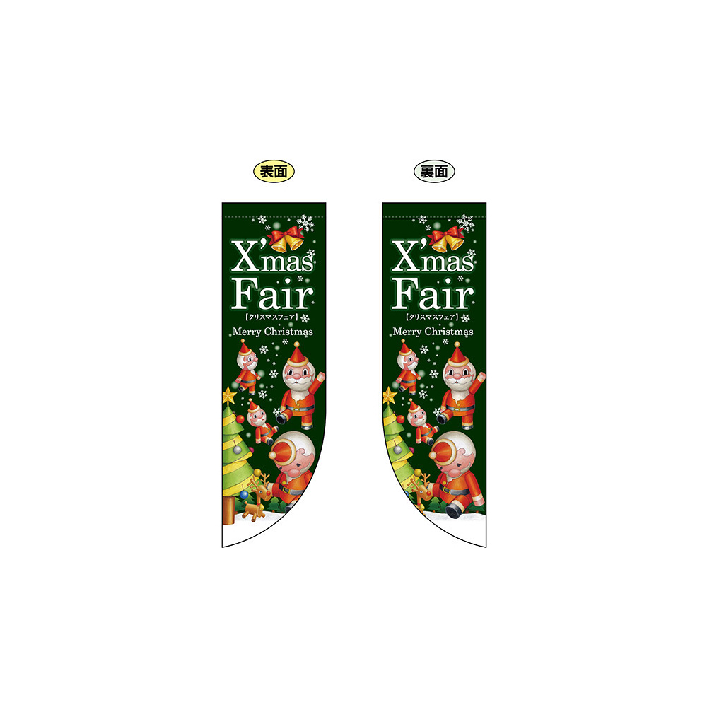 Xmas Fair (緑 サンタの絵大きめ) フラッグ(遮光・両面印刷) (69440)