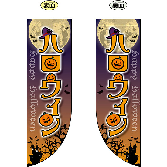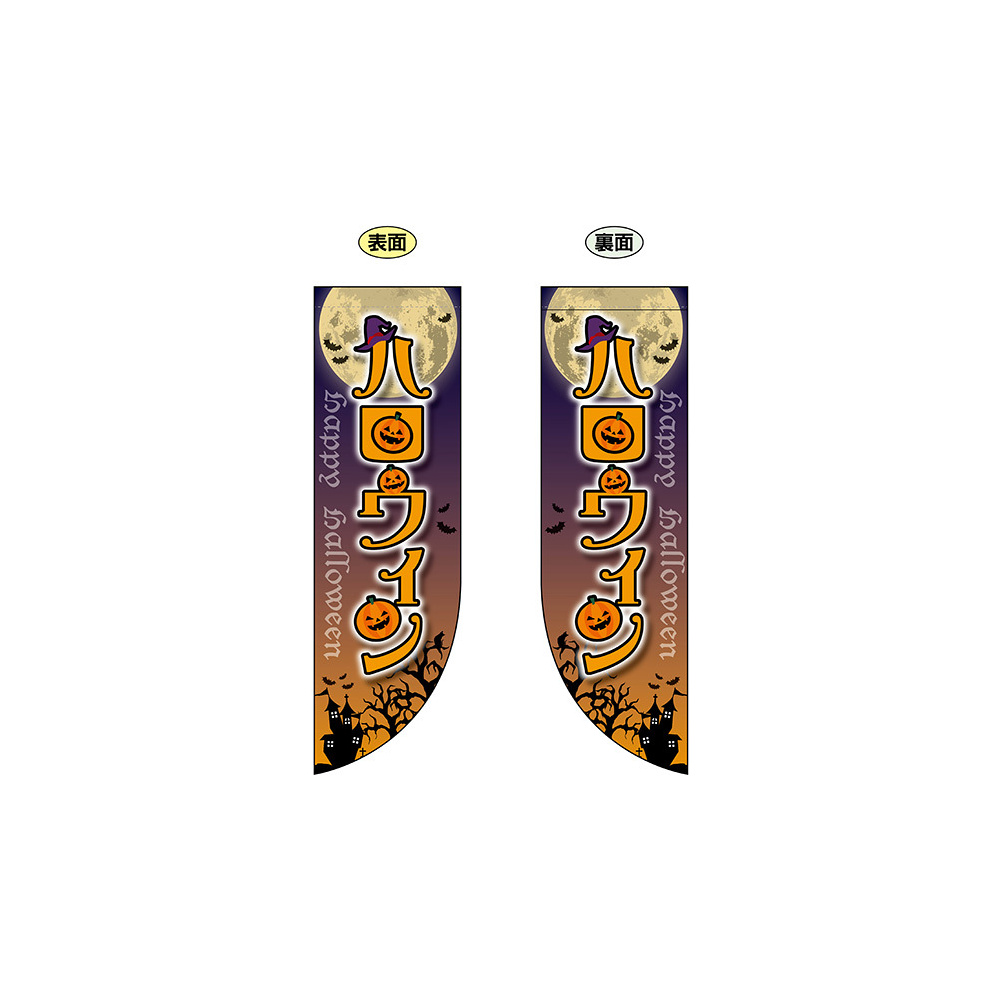 高さ850mmのロングタイプの高級遮光スエード素材に両面印刷した本格派販促フラッグ。表示内容「ハロウィン」