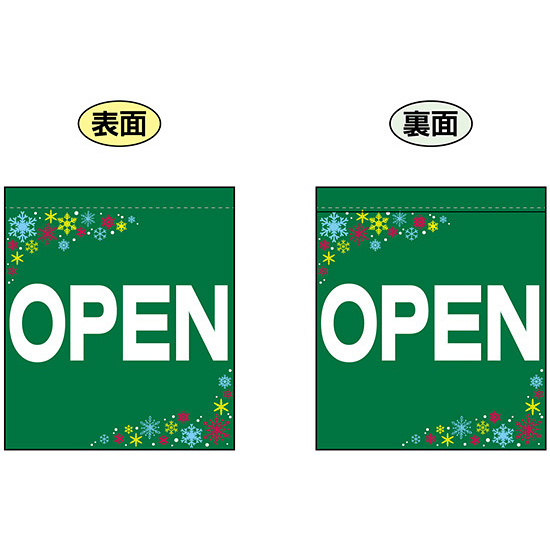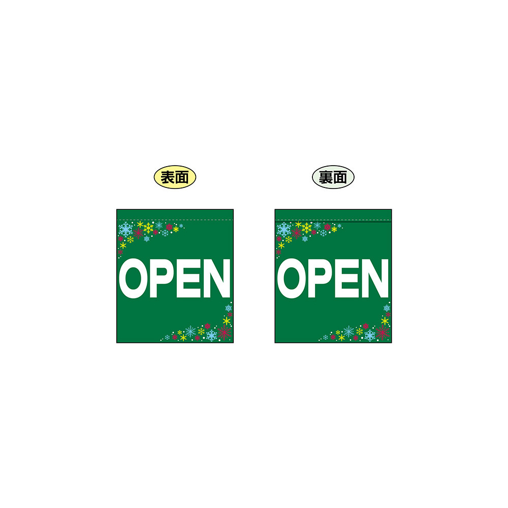 OPEN (緑 白文字 横書き) ミニフラッグ(遮光・両面印刷) (69581)