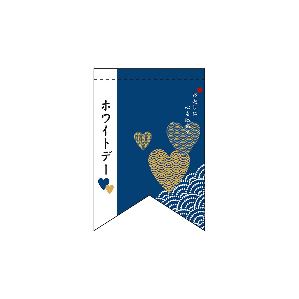 - ホワイトデー (和風デザイン) リボン型 ミニフラッグ(遮光・両面印刷) (61009)