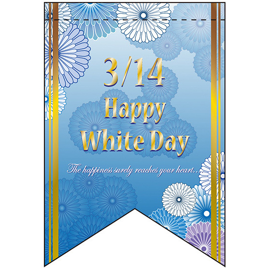 店内のちょっとしたスペースにも飾れるリボンフラッグ型タペストリー。表示内容「ホワイトデー」