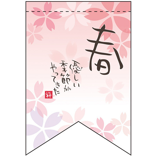 店内のちょっとしたスペースにも飾れるリボンフラッグ型タペストリー。表示内容「春優しい季節」