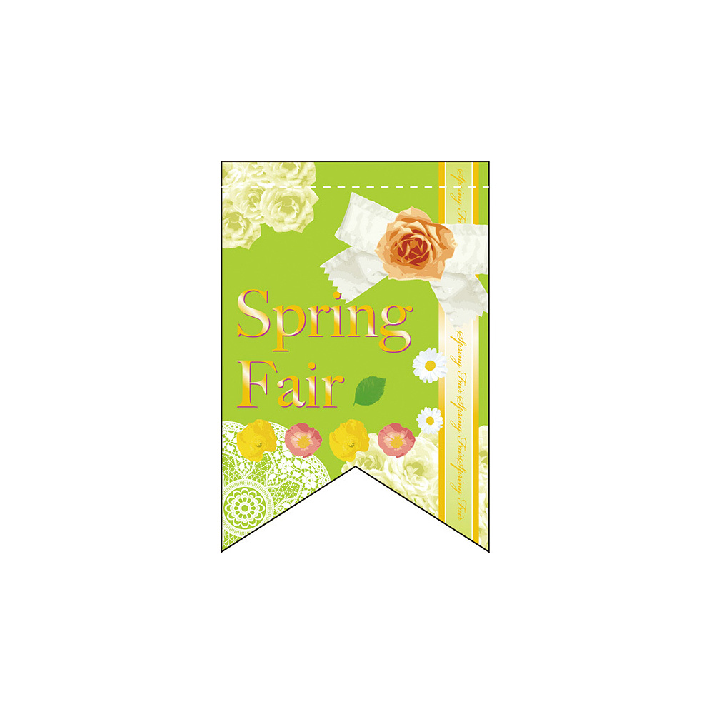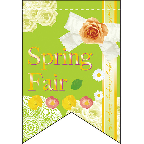 店内のちょっとしたスペースにも飾れるリボンフラッグ型タペストリー。表示内容「スプリング」