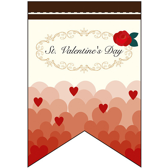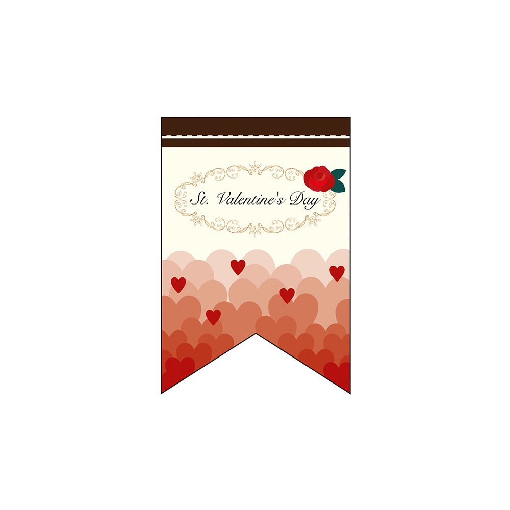 店内のちょっとしたスペースにも飾れるリボンフラッグ型タペストリー。表示内容「バレンタイン」