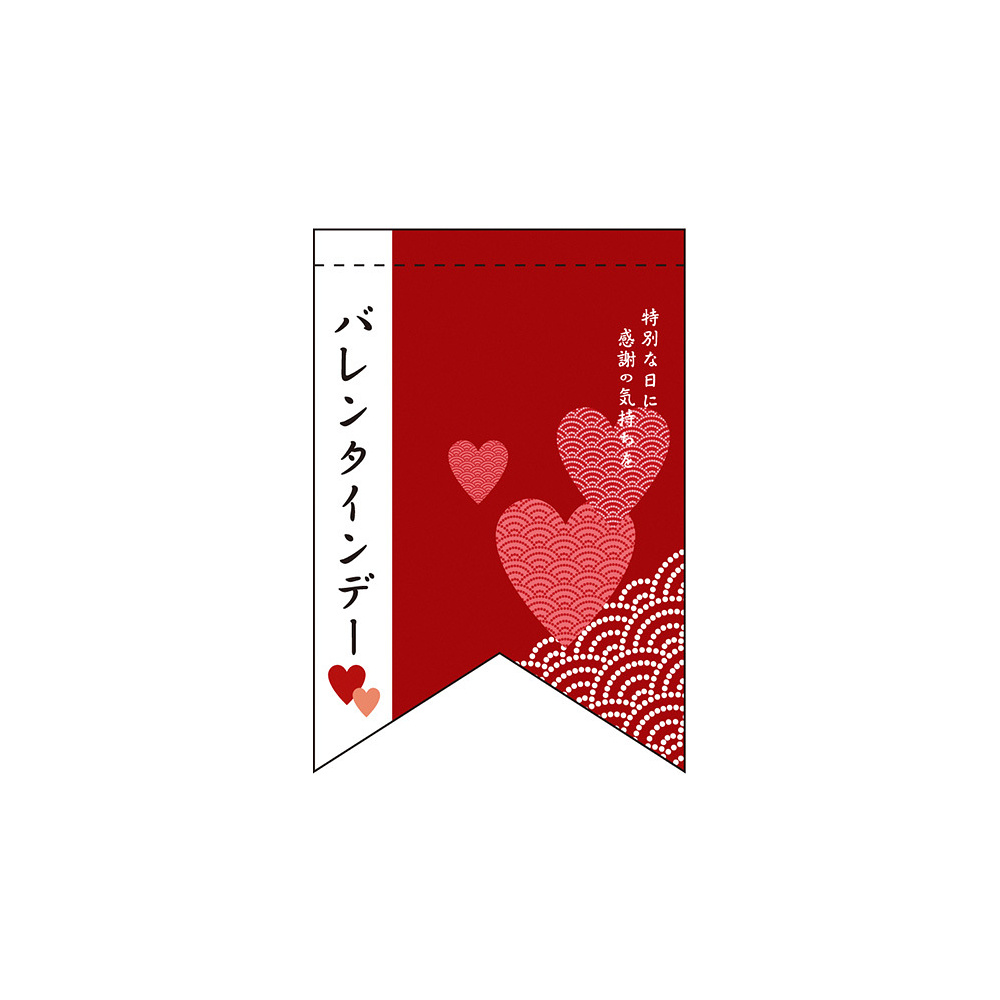 「バレンタインデー (和風デザイン) リボン型 ミニフラッグ(遮光・両面印刷) (61002)」の導入をご検討中ですか? 大量注文・複数台のご検討に応じたお見積りのご相談、最短納期や送料、仕様・サイズの確認など、 バレンタイン・ホワイトデー用フラッグ選びをまとめてサポートいたします。