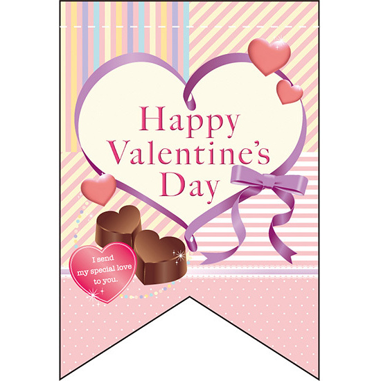 バレンタイン (リボンハート&チョコイラスト) リボン型 ミニフラッグ(遮光・両面印刷) (61004)