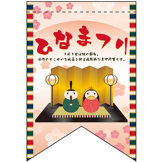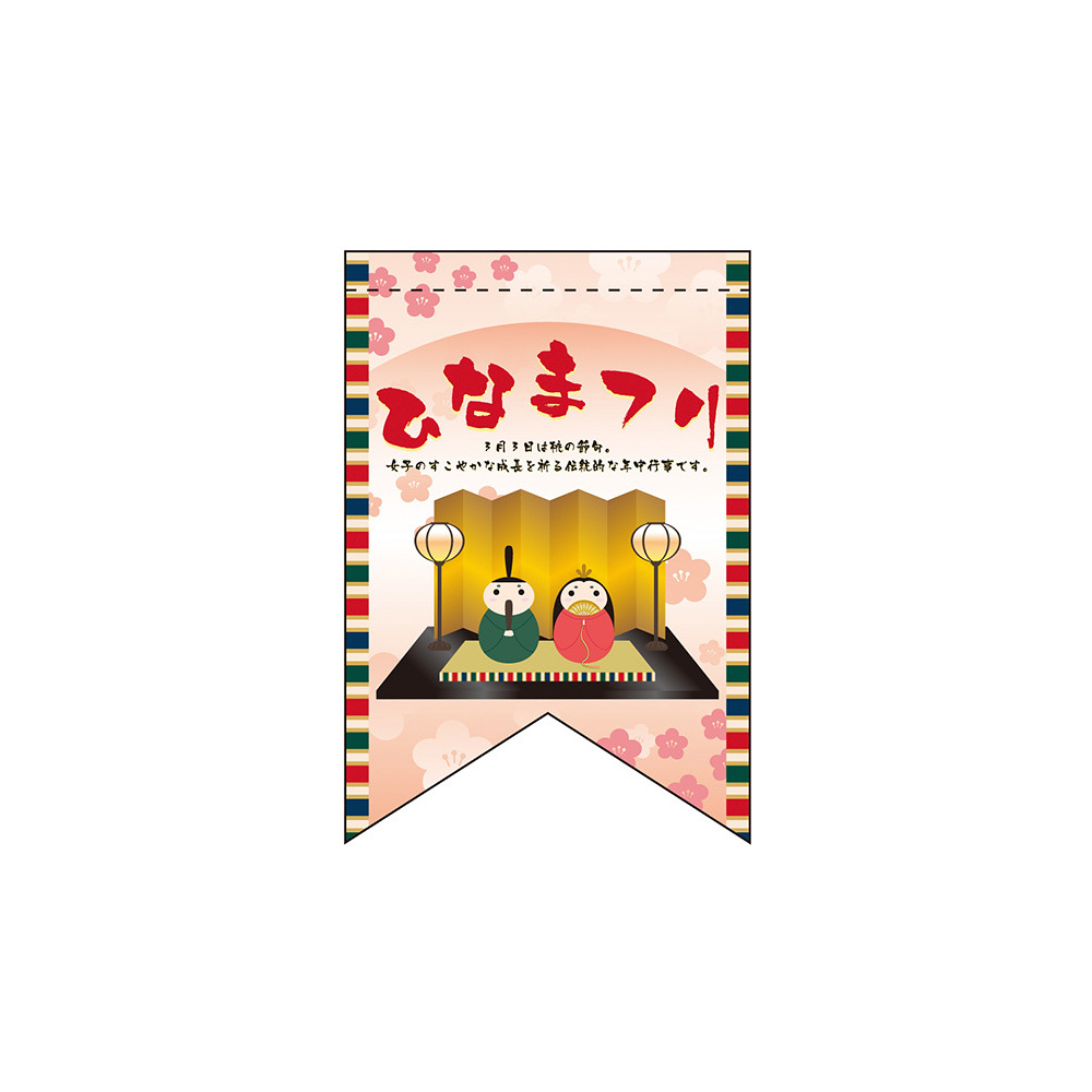 店内のちょっとしたスペースにも飾れるリボンフラッグ型タペストリー。表示内容「ひなまつり」