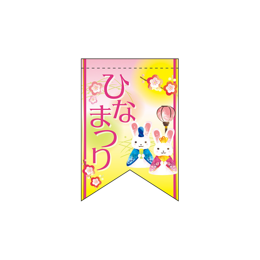 ひなまつり (ピンク&イエローベース) リボン型 ミニフラッグ(遮光・両面印刷) (61025)