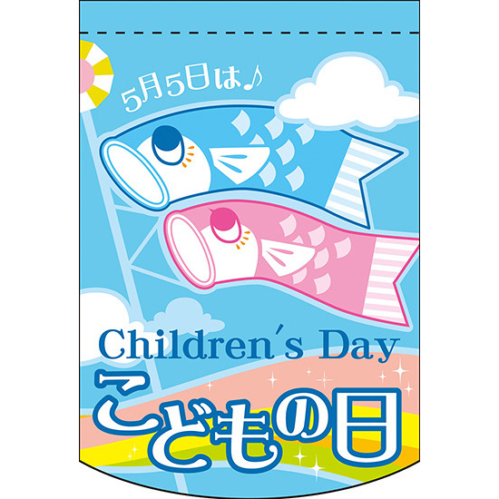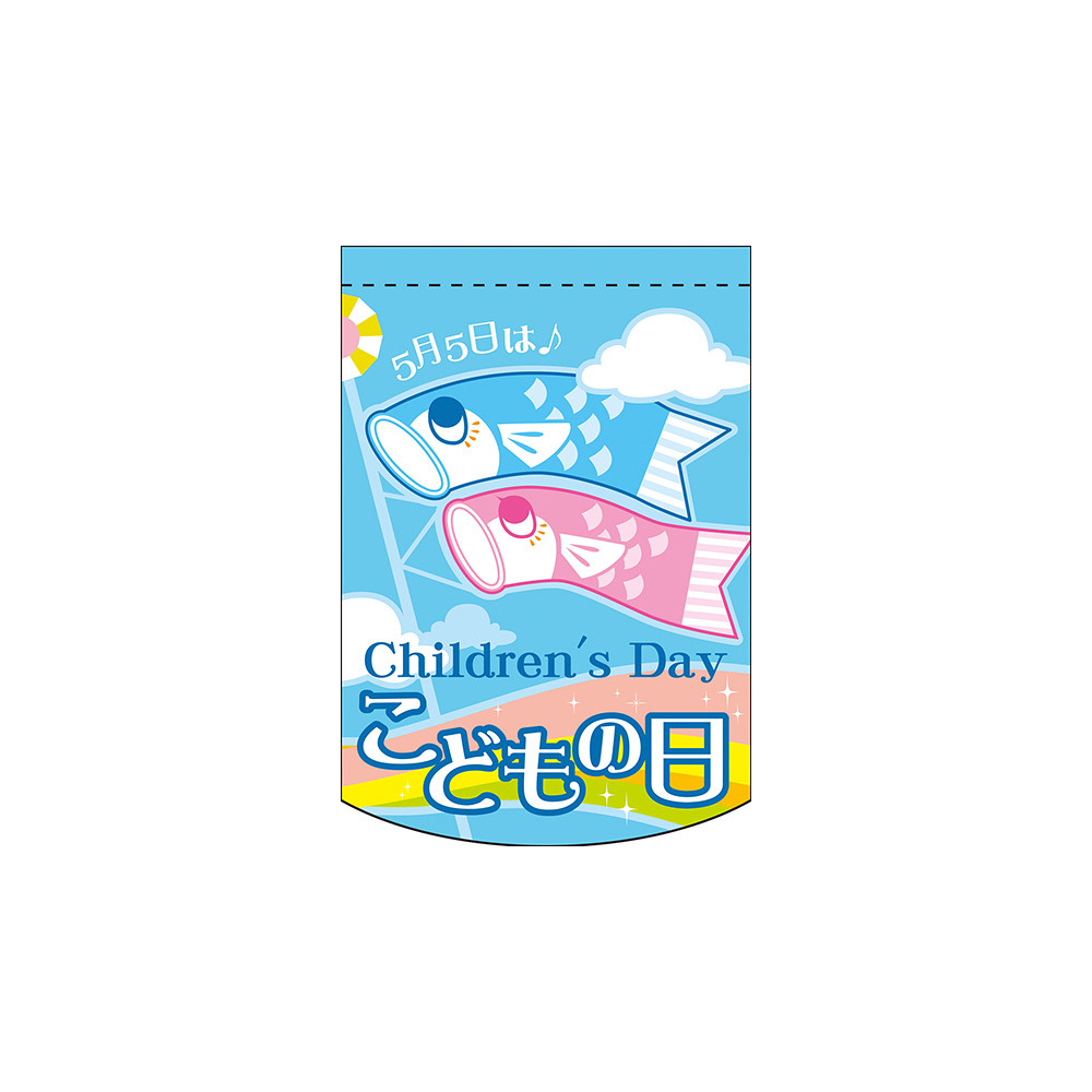 フラッグ下部がやさしいアーチ型にカットされたオシャレなフラッグ。店内のちょっとしたスペースにも飾れます。表示内容「こどもの日 虹」