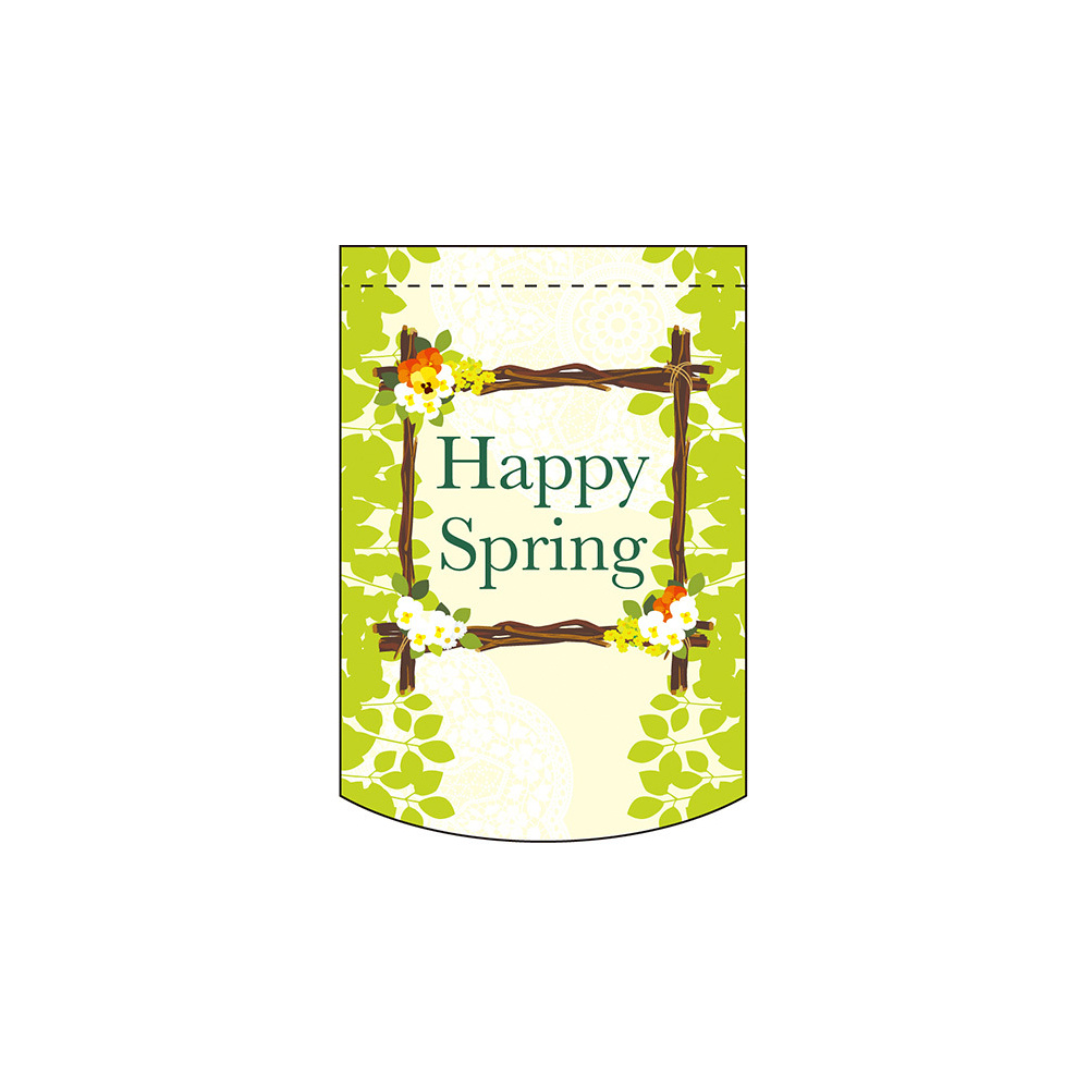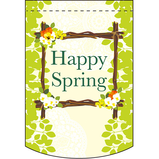 フラッグ下部がやさしいアーチ型にカットされたオシャレなフラッグ。店内のちょっとしたスペースにも飾れます。表示内容「ハッピースプリング」