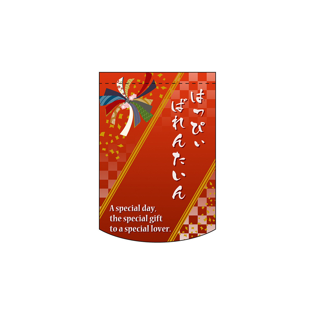 フラッグ下部がやさしいアーチ型にカットされたオシャレなフラッグ。店内のちょっとしたスペースにも飾れます。表示内容「はっぴぃばれんたいん」