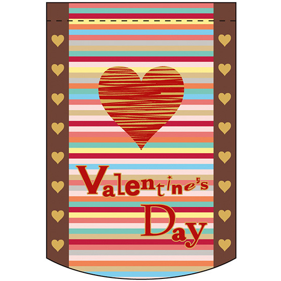フラッグ下部がやさしいアーチ型にカットされたオシャレなフラッグ。店内のちょっとしたスペースにも飾れます。表示内容「バレンタインデー」