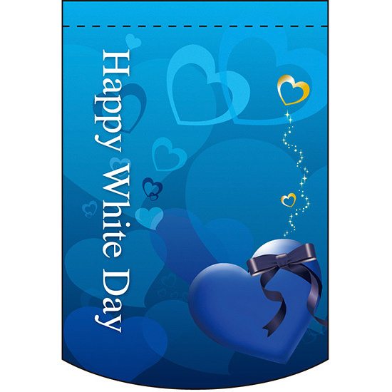 ハッピー ホワイトデー (ブルーベース・ブルーハート) アーチ型 ミニフラッグ(遮光・両面印刷) (61038)