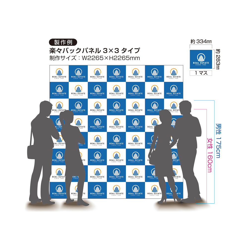 楽々!バックパネルスタンド3×3用 印刷製作代 (※本体別売) 防炎トロマット(2枚つなぎ) 正面のみ 本体同時購入用 (Print-19304-TM3) |