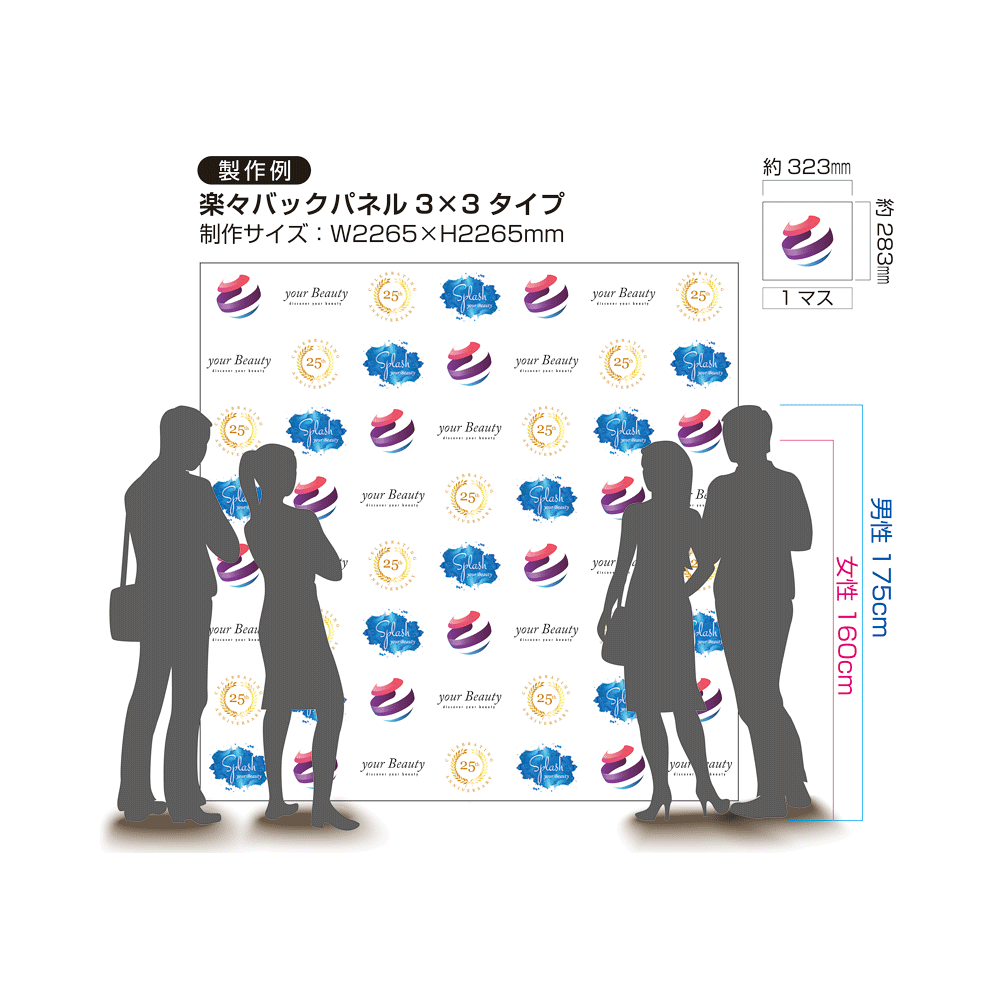 楽々!バックパネルスタンド3×3用 印刷製作代 (※本体別売) 防炎トロクロス【つなぎ目なしの1枚布】 サイドカバー有り 本体同時購入用 (Print-19304-FV2) |