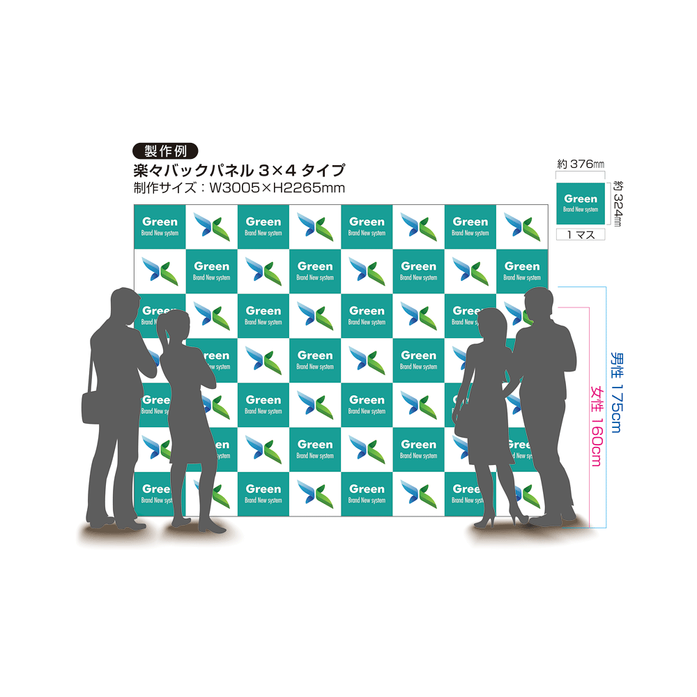 楽々!バックパネルスタンド3×4用 印刷製作代 (※本体別売) 防炎トロマット(2枚つなぎ) 正面のみ 本体同時購入用 (Print-19305-TM3) |