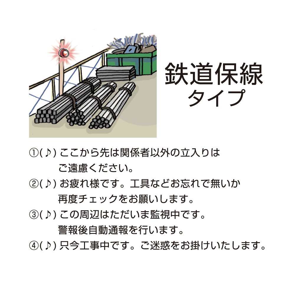 ■鉄道保線向け音声 資材置き場などの監視や管理に。盗難防止や周辺へのアナウンスなどを盛り込んだタイプです。