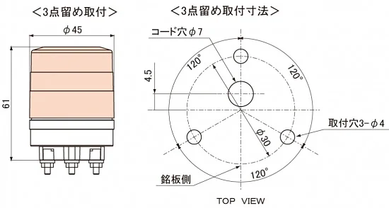 超小型LED回転灯 ニコミニ・スリム Φ45 黄 規格:3点留 (VL04S-024AY) の商品詳細
