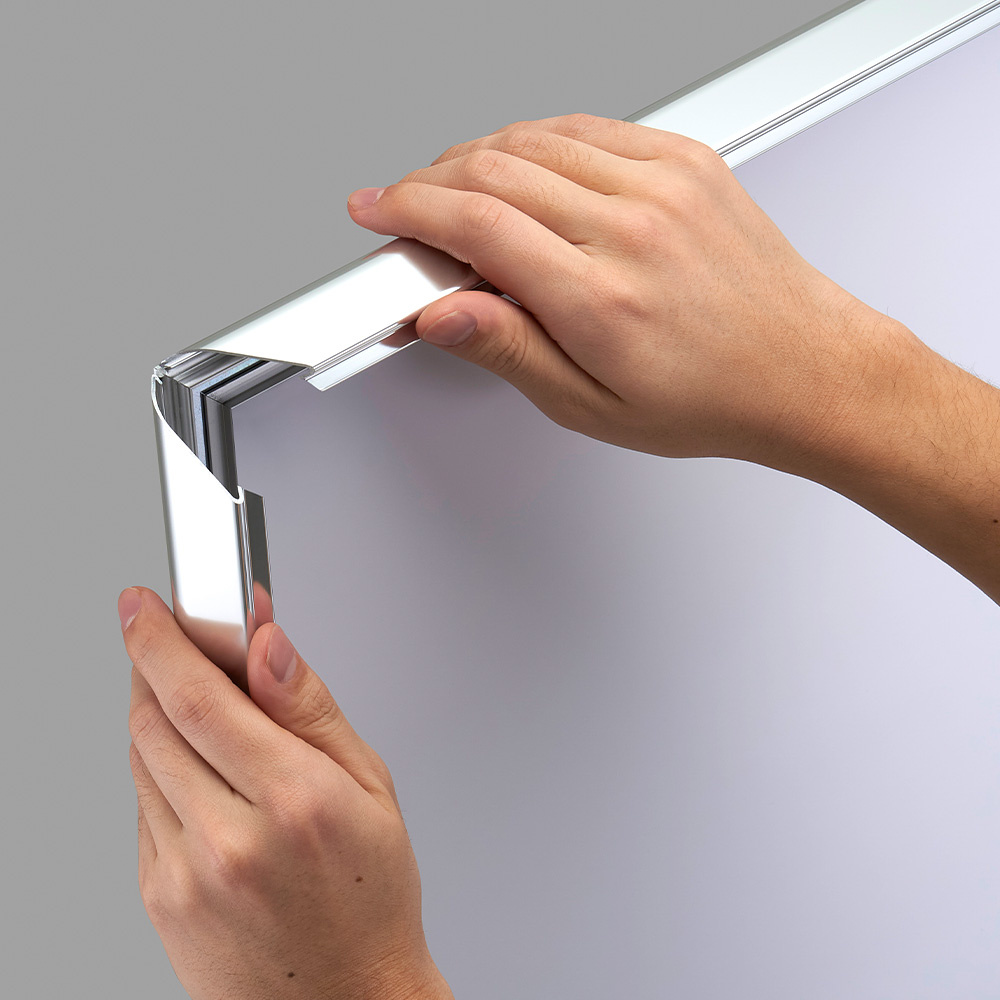 - ポスターは必ず1枚のみセットしてください。1枚以上セットしてフレームを閉めると角部の隙間が大きく開く原因となります。