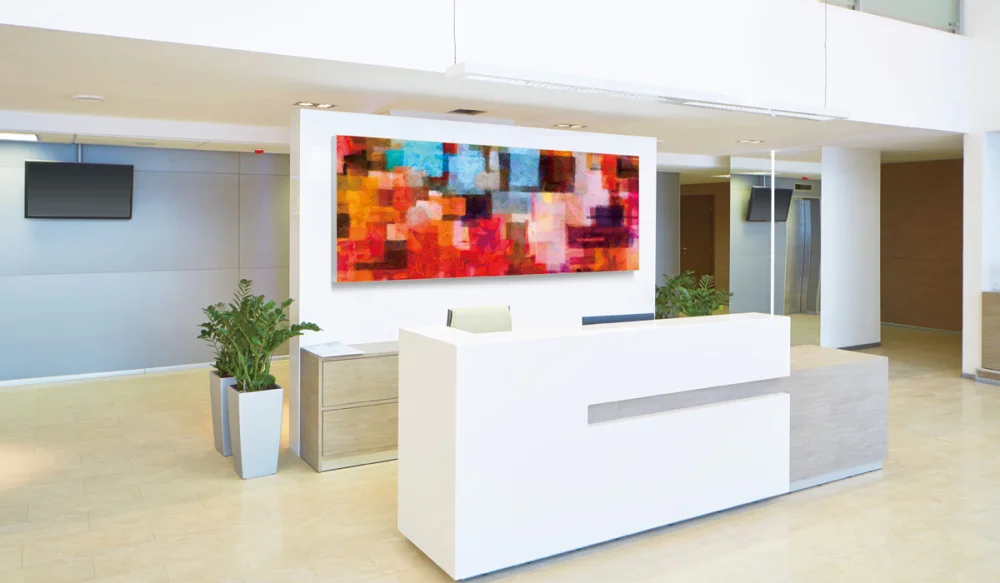 - 壁面への設置はフレームにある取付穴を利用して簡単に行えます。壁一面に広がる鮮明なグラフィックは華やかな演出に最適です。