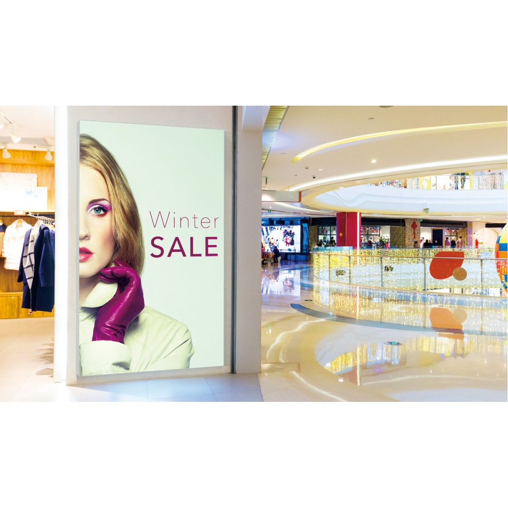 - フレームレスで四辺のギリギリまでビジュアルを表現できるのでインパクト抜群。高級感とオシャレ感抜群で、広告媒体に最適です。