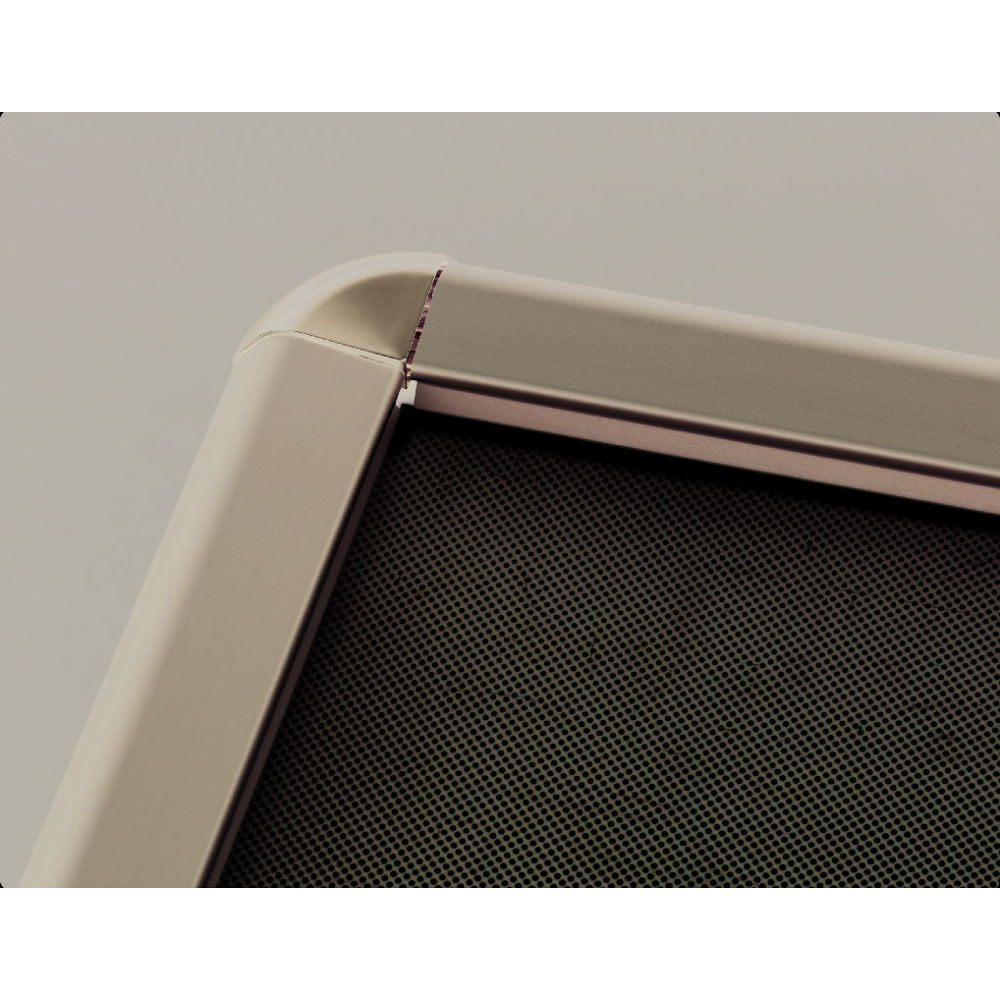 - 4辺開閉式(前面開閉式)でポスターの交換がとっても簡単です。