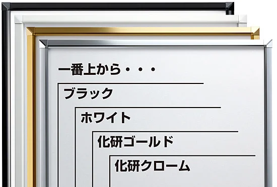 - 壁面に取付けたまま、手でフレームが開けられて、ポスター入れ替えができる4辺開閉式のポスターフレームです。