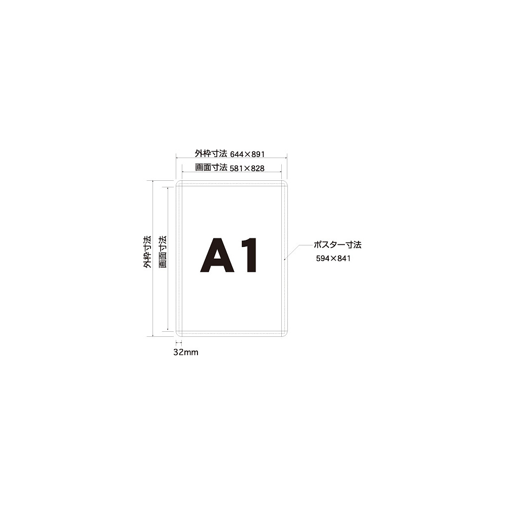 商品説明:ポスターグリップ PG-32R A1サイズ 屋外用 角丸 シルバー