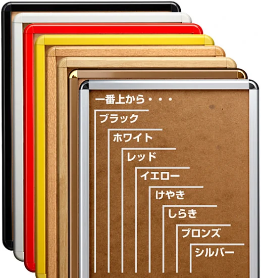 - 壁面に取付けたまま、手でフレームが開けられて、ポスター入れ替えができる4辺開閉式のポスターフレームです。