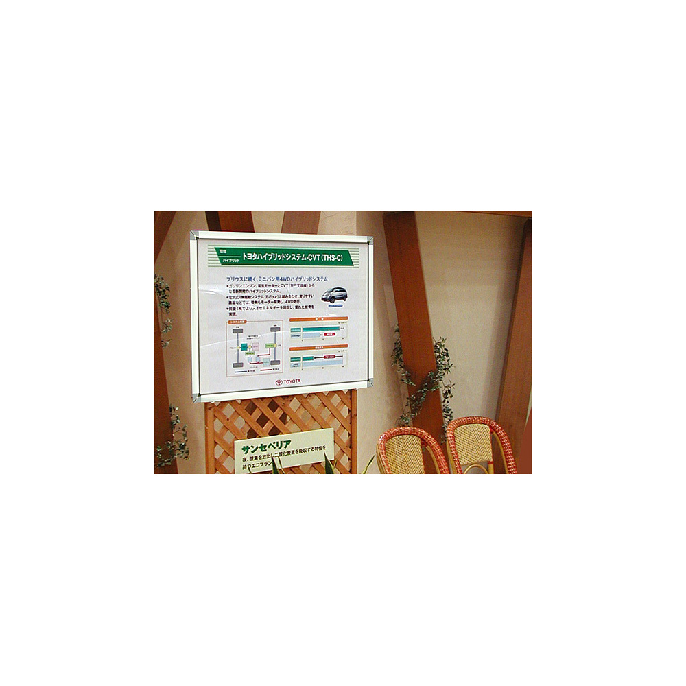 - 壁面に取付けたまま、手でフレームが開けられて、ポスター入れ替えができる4辺開閉式のポスターフレームです。