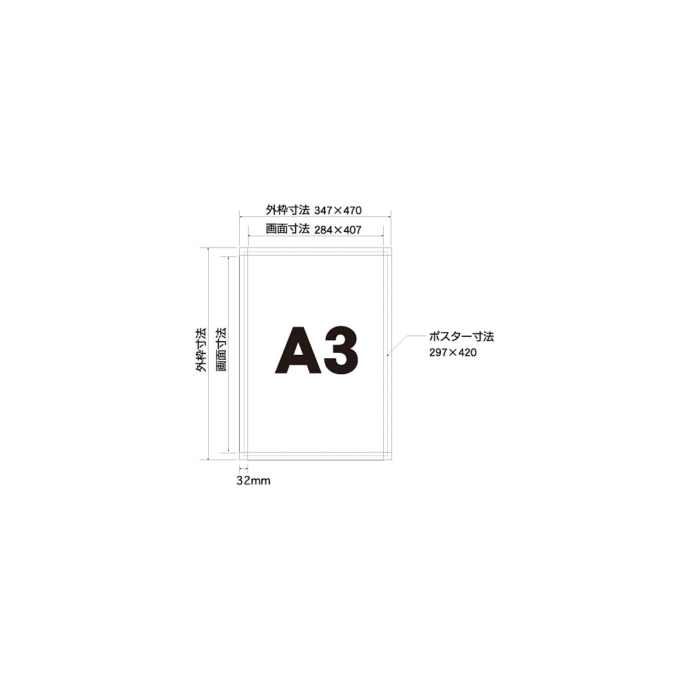 商品説明:ポスターグリップ PG-32S A3サイズ 屋外用 角型 ブラック ※吊り下げ金具・紐 別売