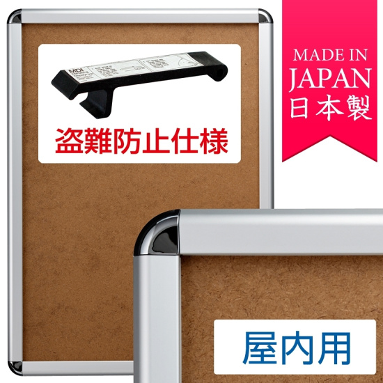盗難防止機能付き。専用オープナーでポスターフレームを開閉します。